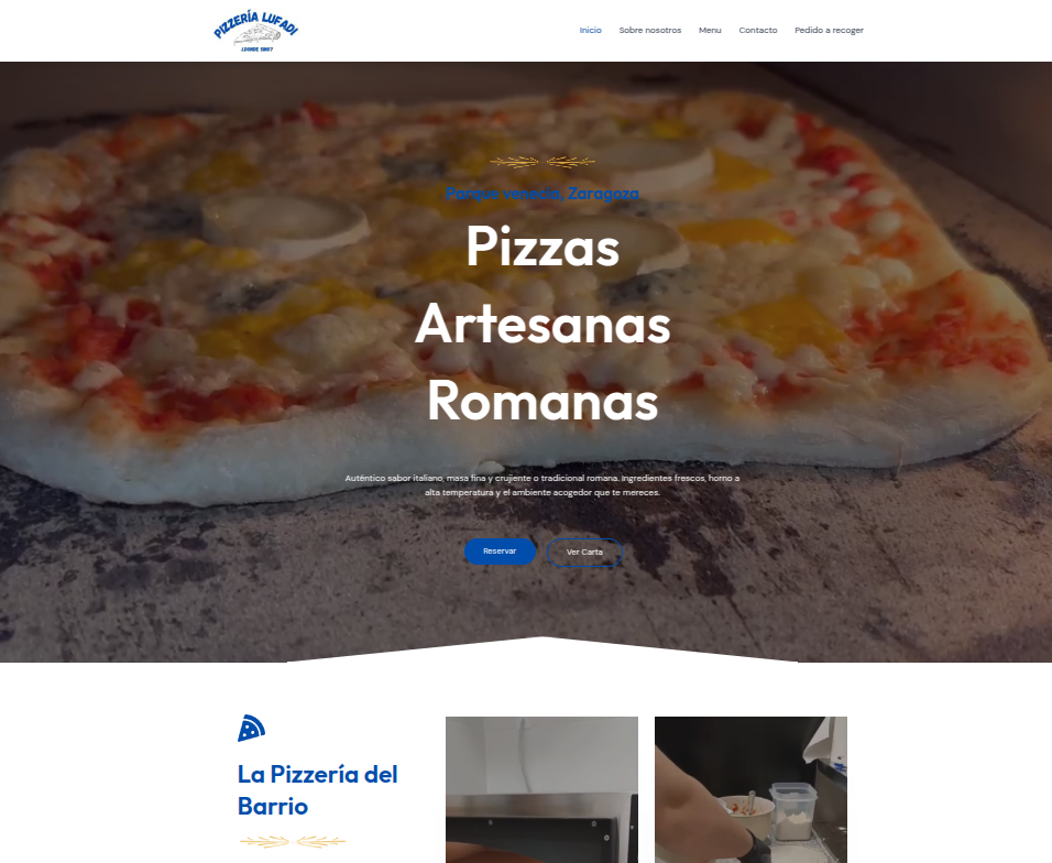 Web moderna y muy visual que muestra sus pizzas artesanas romanas en Parque Venecia (Zaragoza). Carta online clara y precios visibles.